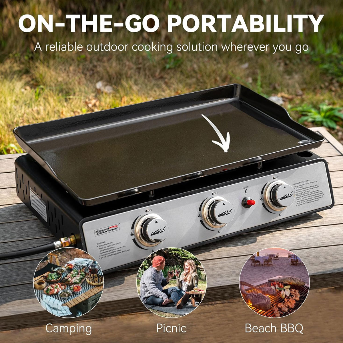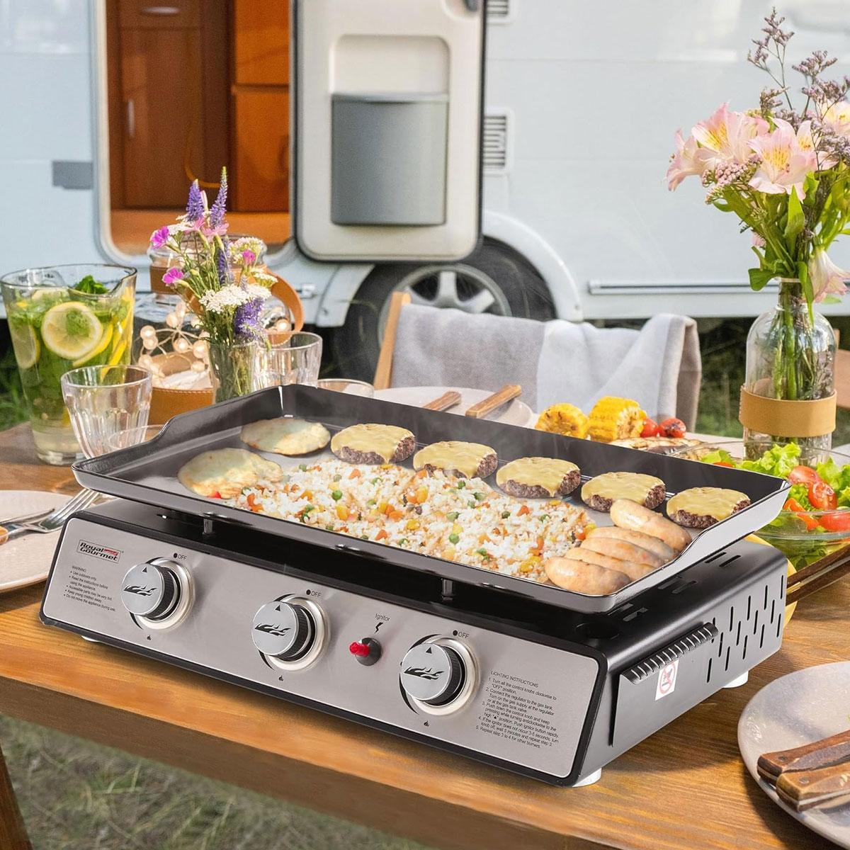 Portable and Convenient: Portable and easy to store. With sturdy feet for enhanced stability, this tabletop griddle is perfect for any outdoor or home use by connecting the regulator with 20 lb. LP tank (not included) as fuel