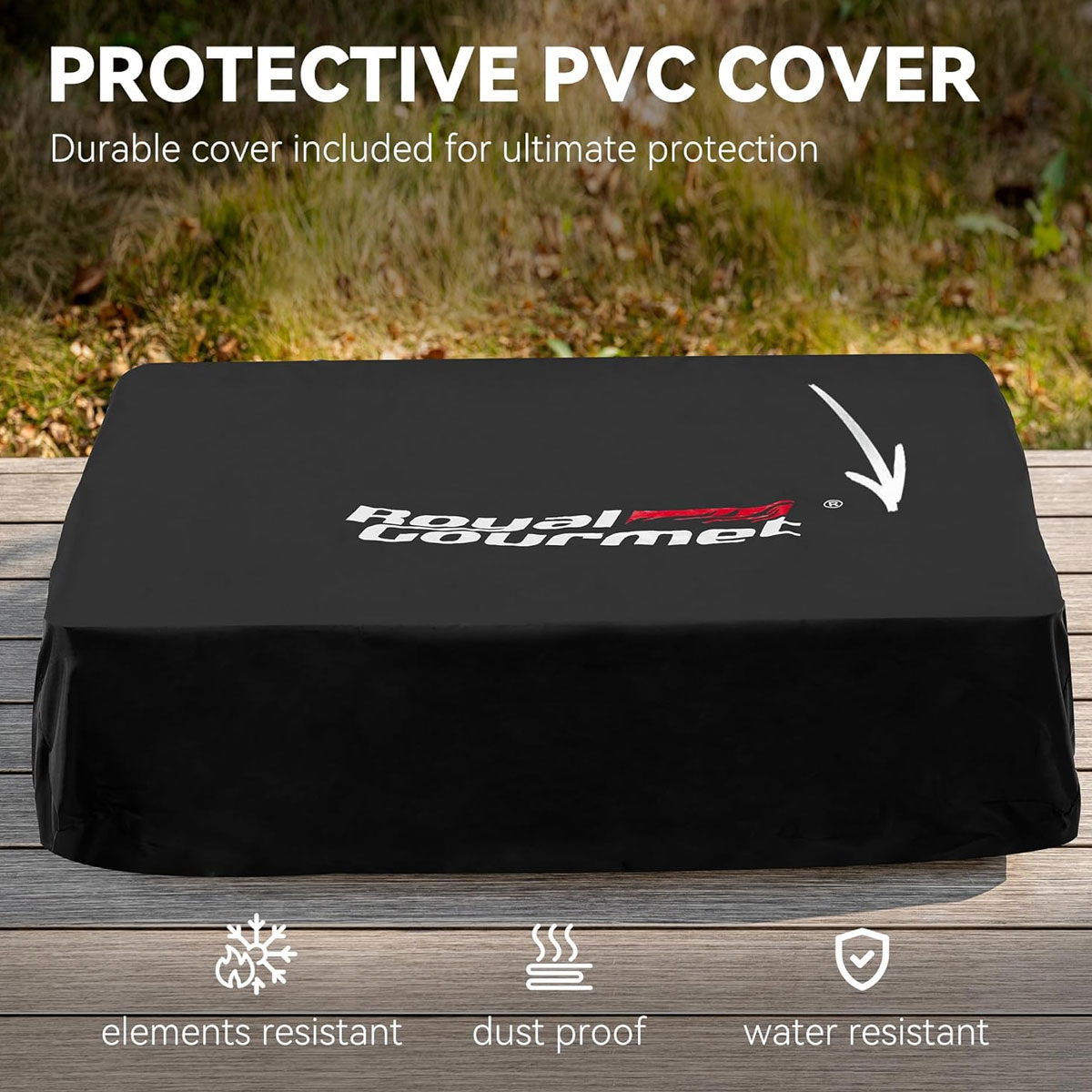 Protective PVC Cover: The durable PVC griddle cover, which protects your portable griddle from any elements and bad weather, is included in the package upon delivery