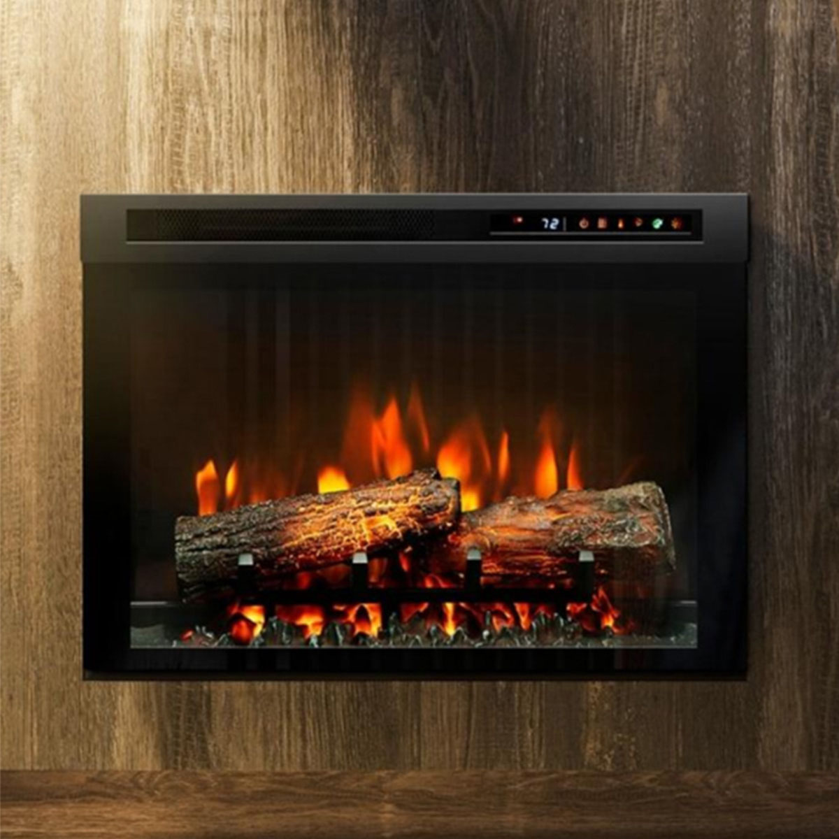 The Dimplex Firebox XHD 28″ is an electric inset fireplace, which can be built into a wall or a bespoke surround. Several extra qualities make the XHD models stand out. Its frameless housing offers maximum view on the flames, the movement speed of the flames is adjustable, and the special glow bed has several color themes, customizable to fit your taste and style. The digital thermostat of the built-in heater ensures that the temperature is pleasantly easy to control.