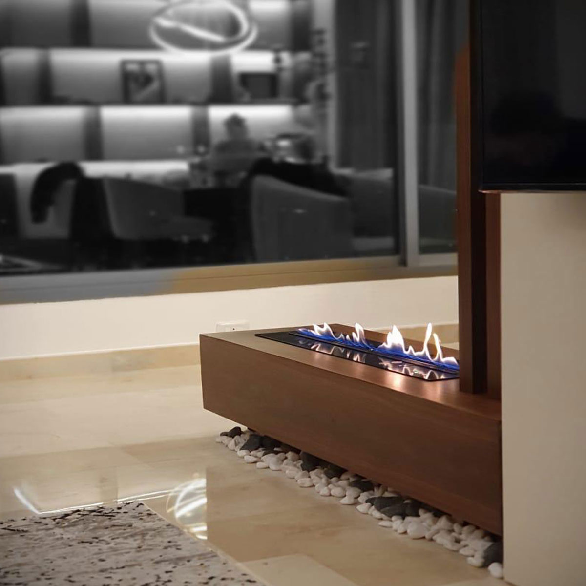 Among the best Art Fireplace Designs, The Ventless Ribbon Ethanol Burner inserts allows the flames to develop freely and in a very natural way! The intermediate solution for a dynamic fire.