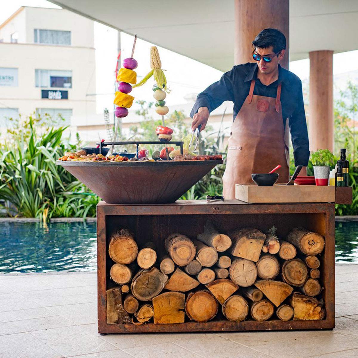 This all-in-one unit combines unbeatable style and functionality in a compact design. The OFYR Island provides everything you need for an ultimate outdoor cooking experience with friends or family. It includes an 85 cm or 100 cm OFYR cooking unit with wood storage, a chopping board and a handy accessories tray for utensils and condiments. The chopping board is available in teak wood or dark grey ceramic.