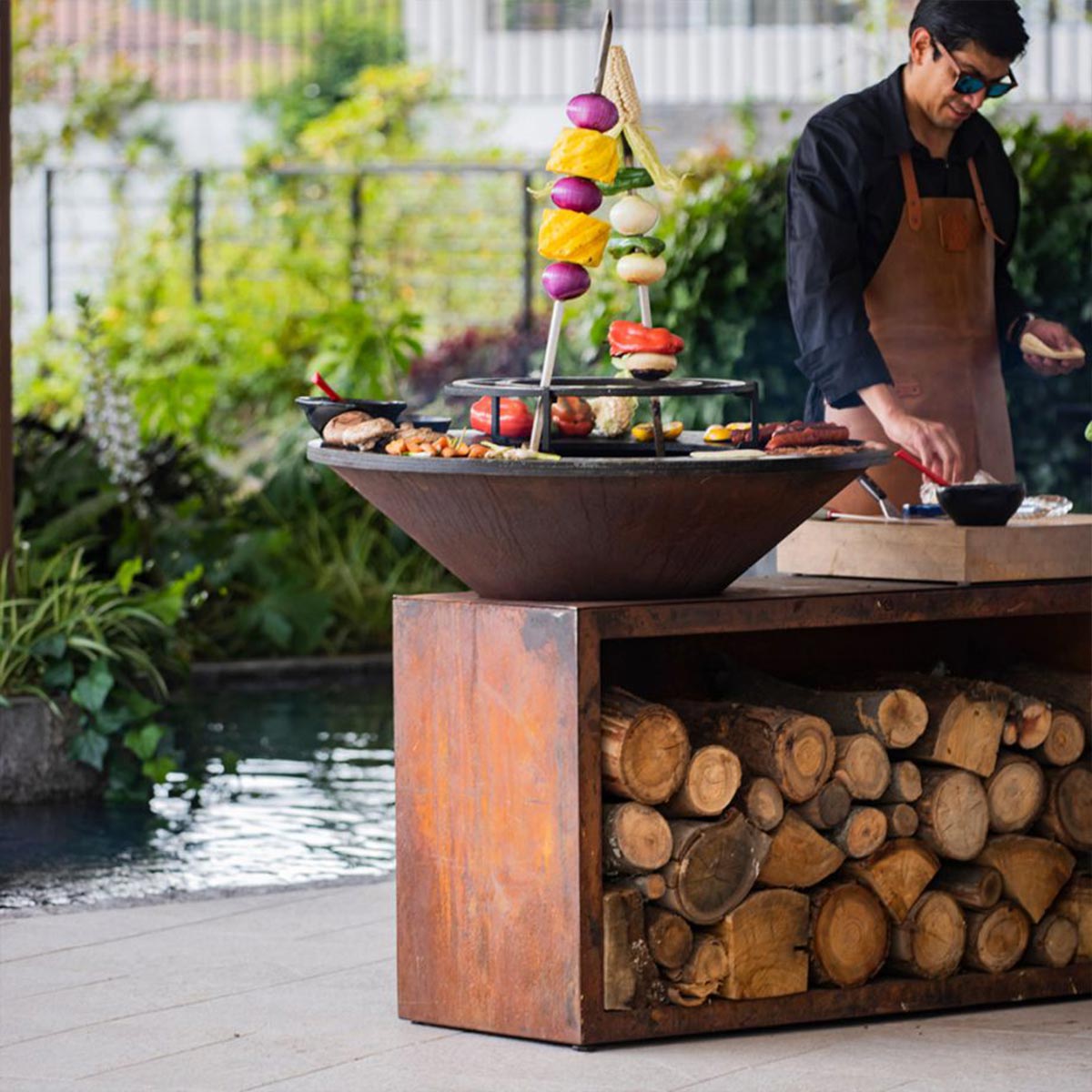 This all-in-one unit combines unbeatable style and functionality in a compact design. The OFYR Island provides everything you need to have an ultimate outdoor cooking experience with friends or family. It includes an 85 cm or 100 cm OFYR cooking unit with wood storage, solid wood chopping board and a handy accessories tray for utensils and condiments. The chopping board is available in teak wood or dark grey ceramic.