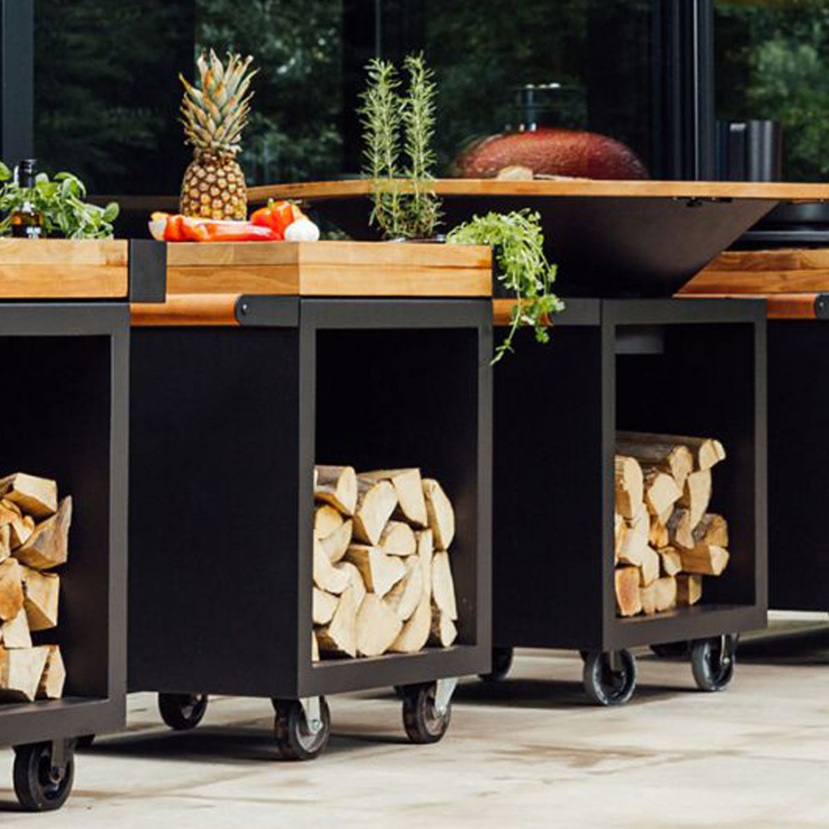 * A ceramic worktop can be left outside permanently; a teak worktop is best kept inside and must be regularly treated with an oil suitable for food.