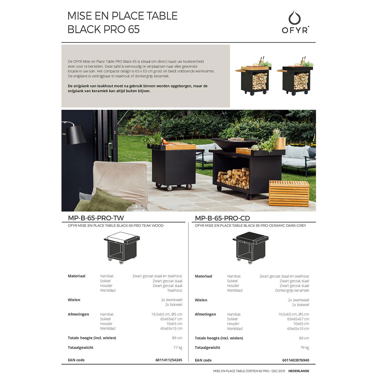 The OFYR Mise En Place Table Black 65 PRO is perfect for preparing your food next to your cooking unit. It is easy to move around and place in your garden. With its 65 x 65 cm measurements, the compact form offers plenty of working space. The chopping board is available in teak wood and dark grey ceramic.