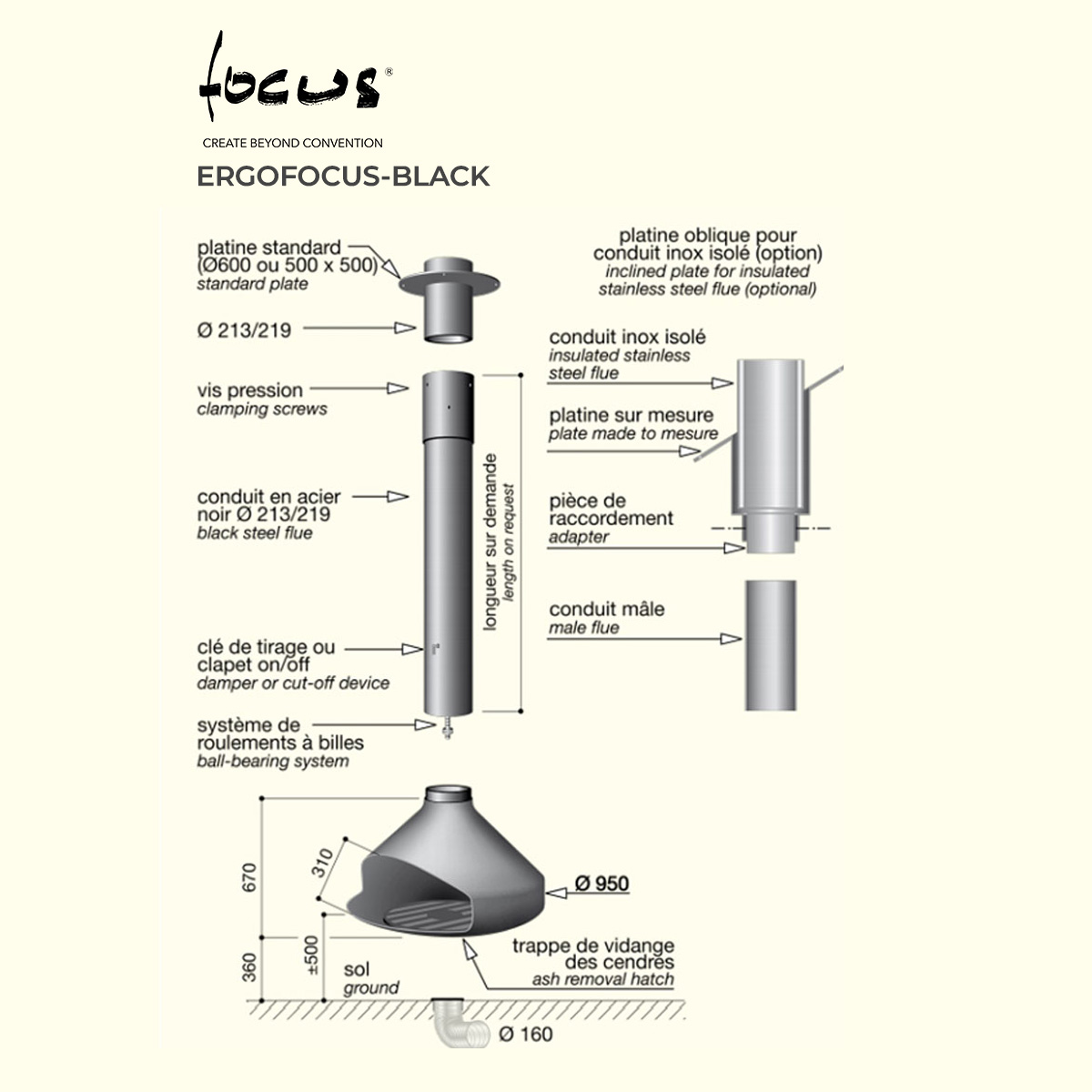 FOCUS FRANCE Wood Fire Central Ergofocus Rotating Black